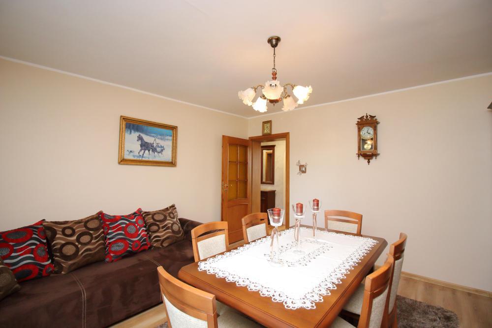 | BIURO NIE POBIERA PROWIZJI OD KUPUJĄCEGO PRZY TEJ OFERCIE! UWAGA - forma własności mieszkania to udział ze wskazaniem do korzystania z lokalu mieszkalnego, garażu oraz piwnicy - BRAK MOŻLIWOŚCI KREDYTOWANIA - ZAKUP TYLKO ZA GOTÓWKĘ ! ZOSTAŁ ZAŁĄCZONY FILM PREZENTUJĄCY OFERTĘ! Komorniki os. Spółdzielcze na sprzedaż ładne 3 pokojowe mieszkanie o powierzchni 59,8 m2 z piwnicą około 15 m2 oraz garażem 15 m2 w bloku z 1980 roku. Lokal położony na 1 piętrze w 2 piętrowym budynku ocieplonym styropianem. Dla mieszkańców są dostępne miejsca parkingowe. -salon z aneksem 18,06 m2; -pokój 11,9 m2; -pokój 8 m2; -kuchnia 8,16 m2; -łazienka z kabiną prysznicową 3,6 m2; -spiżarnia z oknem przy kuchni 2 m2 -korytarz 8,05 m2; +piwnica około 15 m2 +garaż 15 m2. Mieszkanie ogrzewane jest piecem gazowym dwufunkcyjnym w kuchni płyta gazowa. W mieszkaniu znajdują się wszystkie sprzęty i wyposażenie niezbędne do zamieszkania. Lokal bardzo słoneczny okna od zachodu kuchnia od wschodu salon, mały pokój od północy. Okna plastikowe 7 letnie z roletami zewnętrznymi. Możliwość światłowodu z INEA. Brak czynszu do wspólnoty czy spółdzielni. Opłaty: gaz około 230 zł na 2 miesiące; woda 100 zł na 2 mc; prąd 150 zł na 2 mc. Cena: 450 000 zł Dostępne od zaraz! prezentacja nieruchomości: TMK Nieruchomości Tomasz Kościucha Klienci biura mogą liczyć na darmową i profesjonalną pomoc doradcy kredytowego w uzyskaniu finansowania zakupu nieruchomości w każdym banku. Przedstawione dane mają charakter informacyjny i nie stanowią oferty w rozumieniu przepisów kodeksu cywilnego. Pośrednik odpowiedzialny 12387 MS14 |